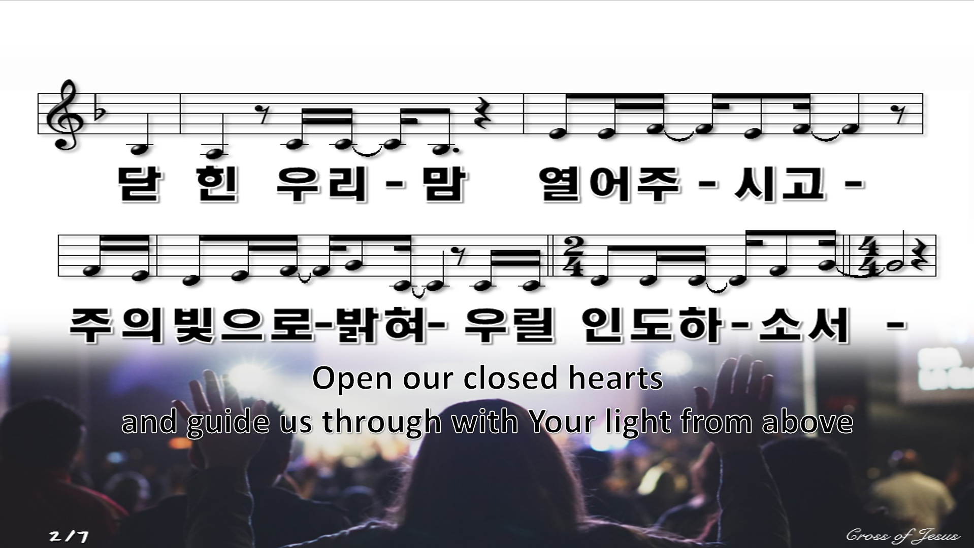 2. 한국어 찬송일 경우, 곡의 운율보다 가사의 의미를 최대한 전달하는 방식으로 번역하여 자막을 제공합니다.