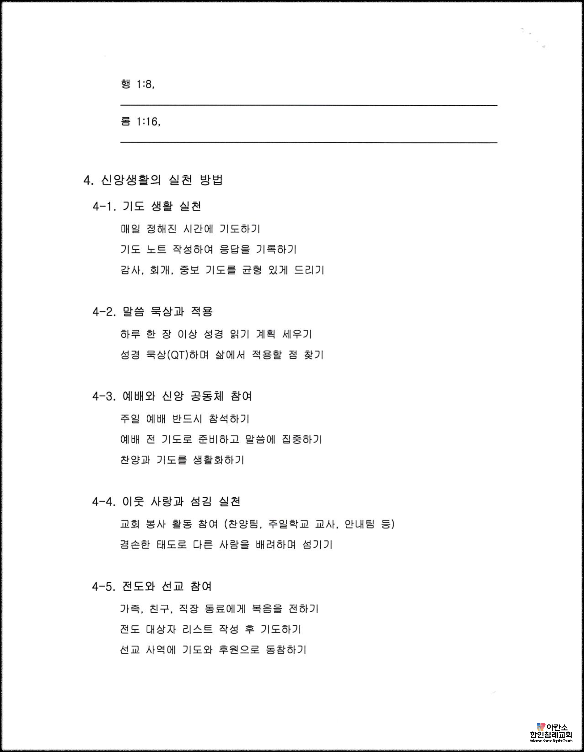 • 신앙생활의 다섯 가지 요소를 실천할 수 있도록