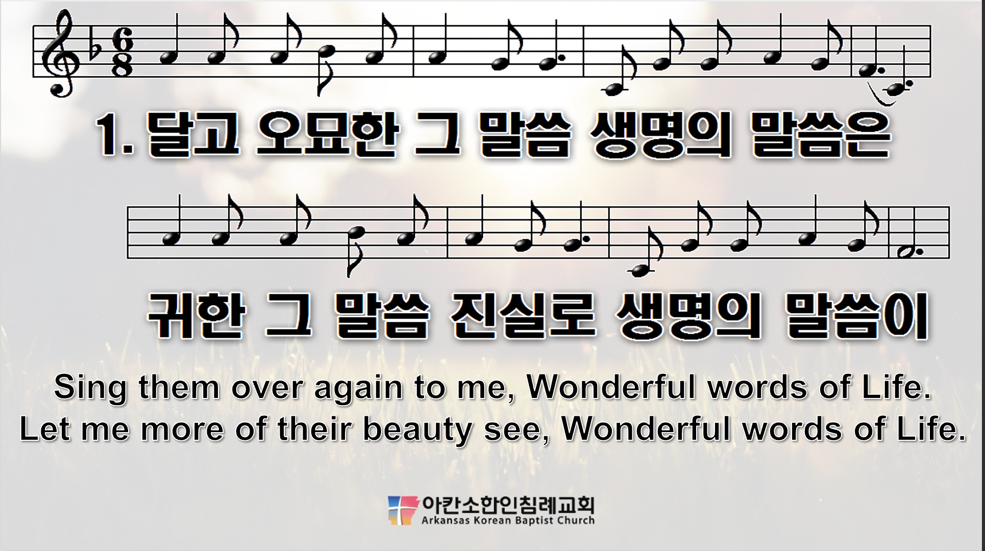 예배 중에 영어 자막을 통해 찬송 가사를 함께 따라 부를 수 있도록 준비한 자료이니, 필요하신 분들은 자료실에서 자유롭게 다운로드 받아 사용해 주세요.