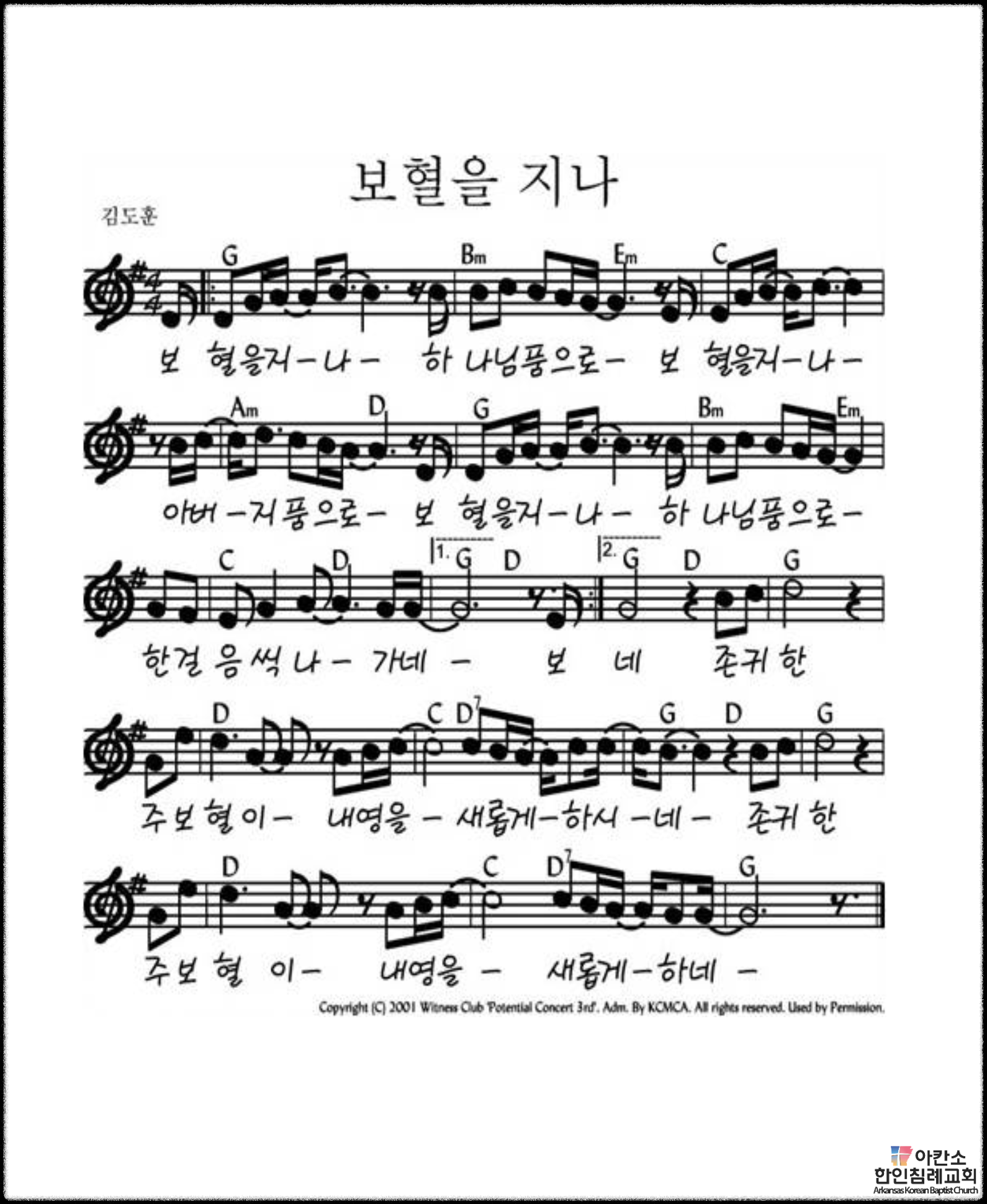 • 찬송 설명 및 배경: ‘보혈을 지나’는 한국의 찬양사역자 김도훈 목사가 1999년에 작사·작곡한 찬양곡입니다. 이 곡은 예수 그리스도의 보혈을 통해 하나님께 나아감을 표현하며, 많은 이들에게 사랑받고 있습니다. 김도훈 목사는 당시 동역자들과 함께 국내외 단기선교와 중보기도 모임을 하던 중, 기도 중에 하늘에서 주먹만 한 핏방울이 떨어지는 환상을 보고 이 곡을 만들게 되었다고 합니다.