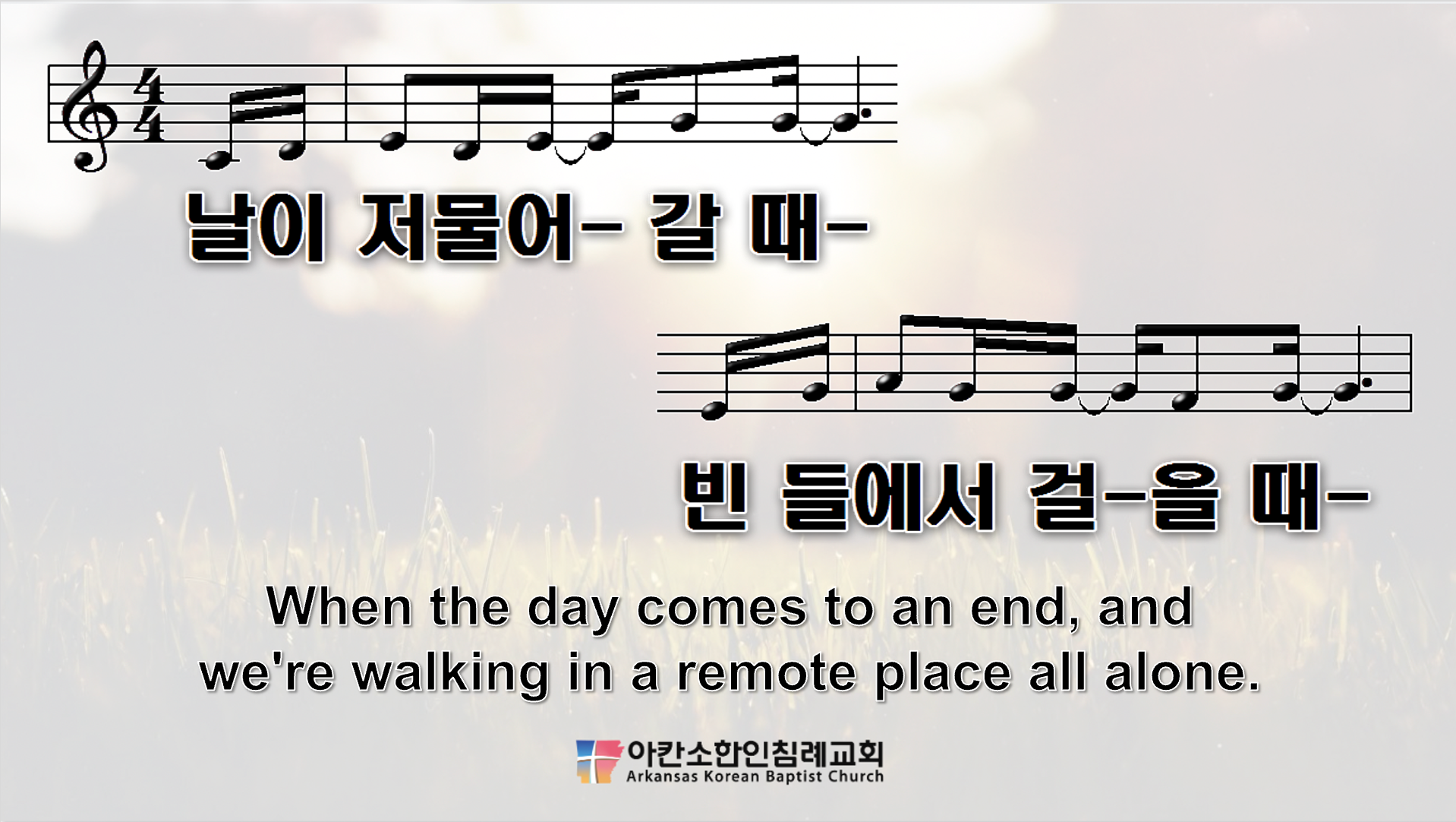 예배 중에 영어 자막을 통해 찬송 가사를 함께 따라 부를 수 있도록 준비한 자료이니, 필요하신 분들은 자료실에서 자유롭게 다운로드 받아 사용해 주세요.
